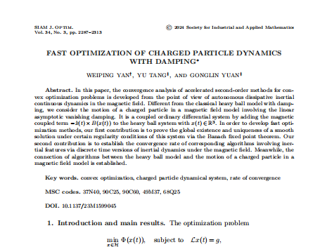 Recently, a research team led by Professor Yan Weiping from the School of Mathematics and Information Science at GXU, in collaboration with Professor Yuan Gonglin, have published a research paper titled Fast optimization of charged particle dynamics with damping in the prestigious SIAM Journal on Optimization. The study reveals that small perturbations in the magnetic field cannot alter the sta...