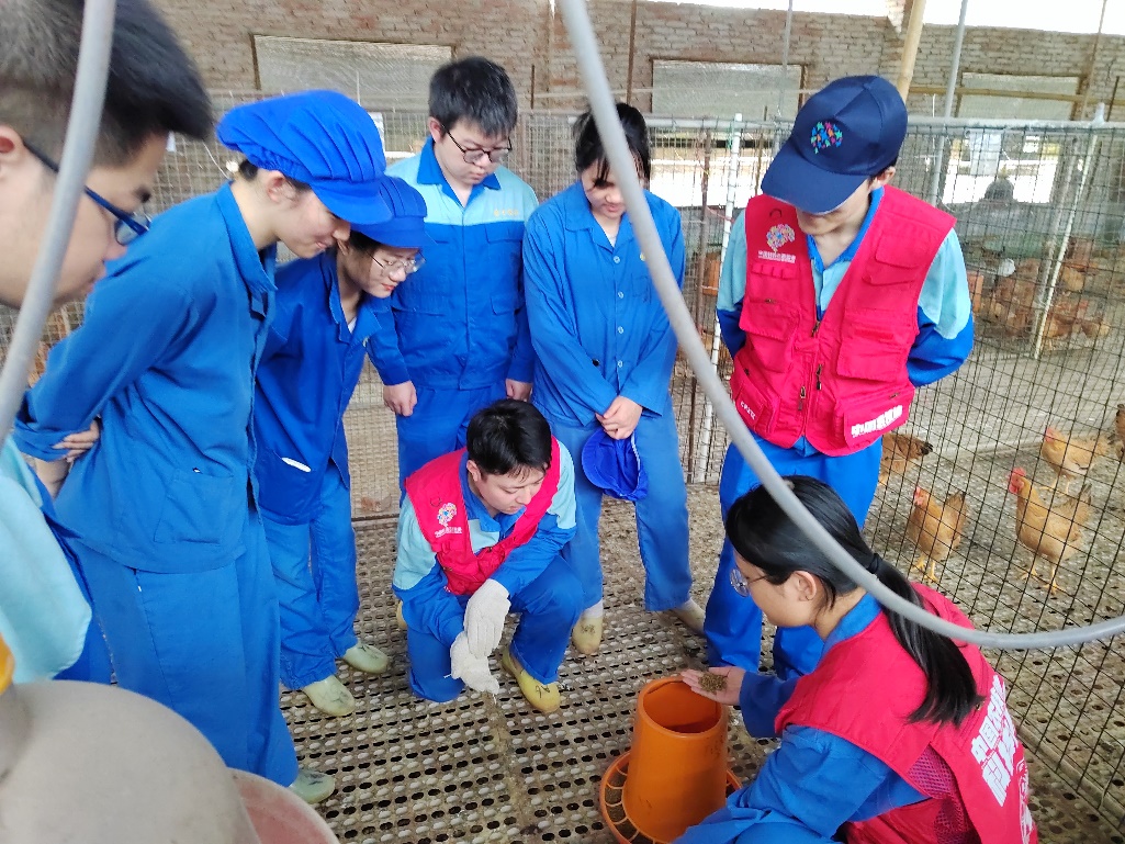 Graduate students from Guangxi Lingshan Xiangji Science and Technology Backyard guiding enterprise staff on scientific feeding.