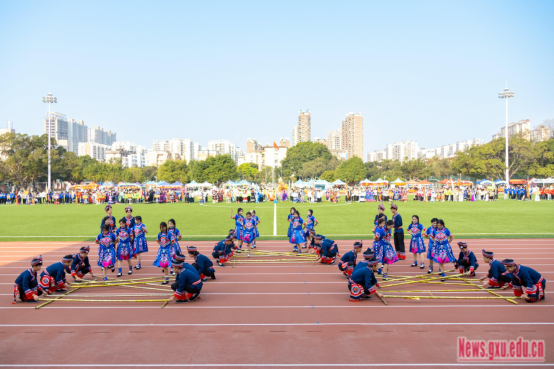 ການສະ ເຫລີມ ສະຫລອງ "Guangxi Zhuang San Yue San" ຂອງ GXU ໄດ້ ດໍາ ເນີນ ງານ ເປັນ ເວລາ 11 ປີ ຕິດຕໍ່ ກັນ, ປະກອບ ດ້ວຍ ປະສົບ ການ ແລະ ການ ແຂ່ງຂັນ ເພື່ອ ສະ ແດງ ໃຫ້ ເຫັນ ມໍລະດົກ ຊົນ ເຜົ່າ ທີ່ ຮັ່ງມີ ຂອງ Guangxi ຜ່ານ ຊ່ອງ ທາງ ທີ່ ແຕກ ຕ່າງ ກັນ. ມັນ ຊີ້ ນໍາ ນັກຮຽນ ໃຫ້ ມີ ສ່ວນ ຮ່ວມ ຢ່າງ ເລິກ ຊຶ້ງ ກັບ ວັດທະນະທໍາ ຂອງ ຊົນ ເຜົ່າ, ເພີ່ມ ຄວາມ ເຂັ້ມ ແຂງ ໃຫ້ ແກ່ ເອກະລັກ ທາງ ວັດທະນະທໍາ, ແລະ ໃຫ້ ກໍາລັງ ແກ່ ຊາວ ຫນຸ່ມ ເພື່ອ ຮັກສາ ແລະ ສົ່ງ ເສີມ ວັດທະນະທໍາ ປະ ເພນີ ທີ່ ດີ ເລີດ ຂອງ ປະ ເທດ ຈີນ.