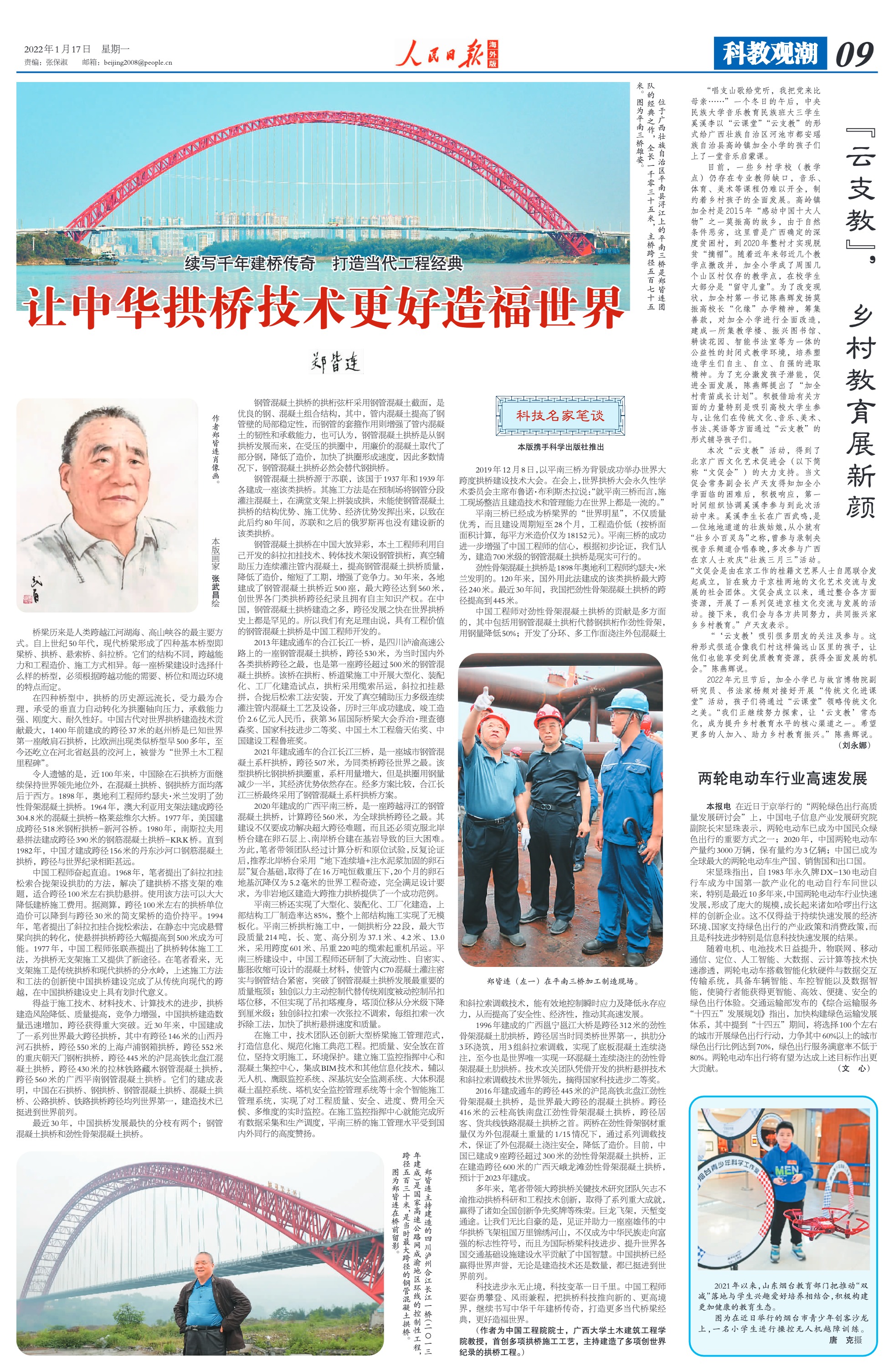 《人民日报》海外版2022年1月17日 第09版刊发郑皆连院士署名文章《让中华拱桥技术更好造福世界》
