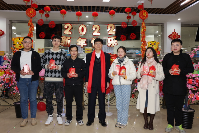 在米乐电竞|最新APP下载|登录入口,萃苑餐厅,罗廷荣代表学校向留校过年的同学们送上新春的问候与祝福,为同学们分发“春节红包”和“福袋”,为近两天过生日的2名同学庆生,与大家同唱生日歌、同切生日蛋糕,并与同学们一起吃年夜饭,拉家常、话发展。