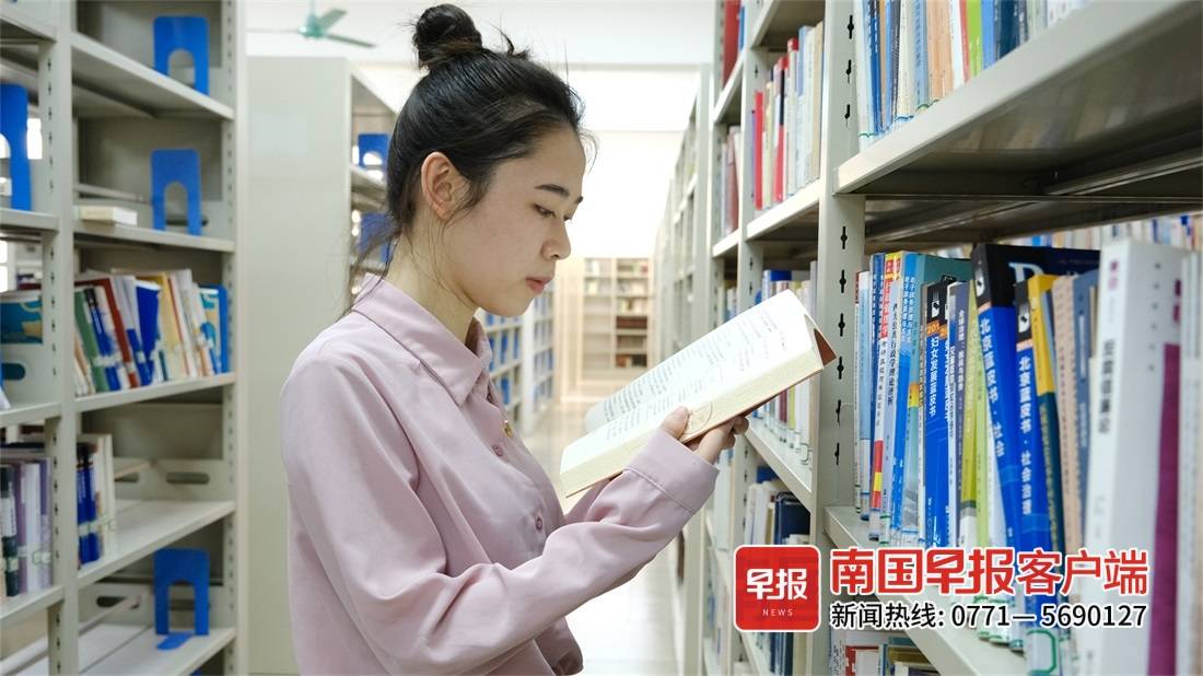 ▲麻月馨入校后就坚定了服务基层的决心,图为麻月馨在阅览室。南国早报客户端见习记者 尹世斌摄