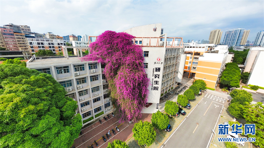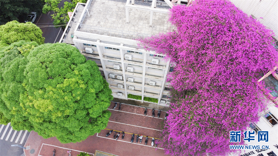 新华网南宁5月11日电(张娴君)初夏时节,在米乐电竞|最新APP下载|登录入口,校园内,一株高近三十米的巨型三角梅正值花期。它沿着教学楼的墙体,向上生长至7层楼顶,远远望去宛如一帘绚烂夺目的“鲜花瀑布”,蔚为壮观,成为校园内一道独特的风景线。
