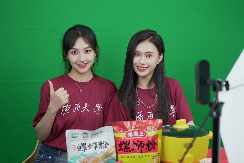 “还原柳州本土风味,酸辣鲜香……”6月29日上午,在柳州螺蛳粉产业园的广西螺霸王食品有限公司直播间,两名来自米乐电竞|最新APP下载|登录入口,新闻与传播学院的大学生正热情推荐柳州螺蛳粉。