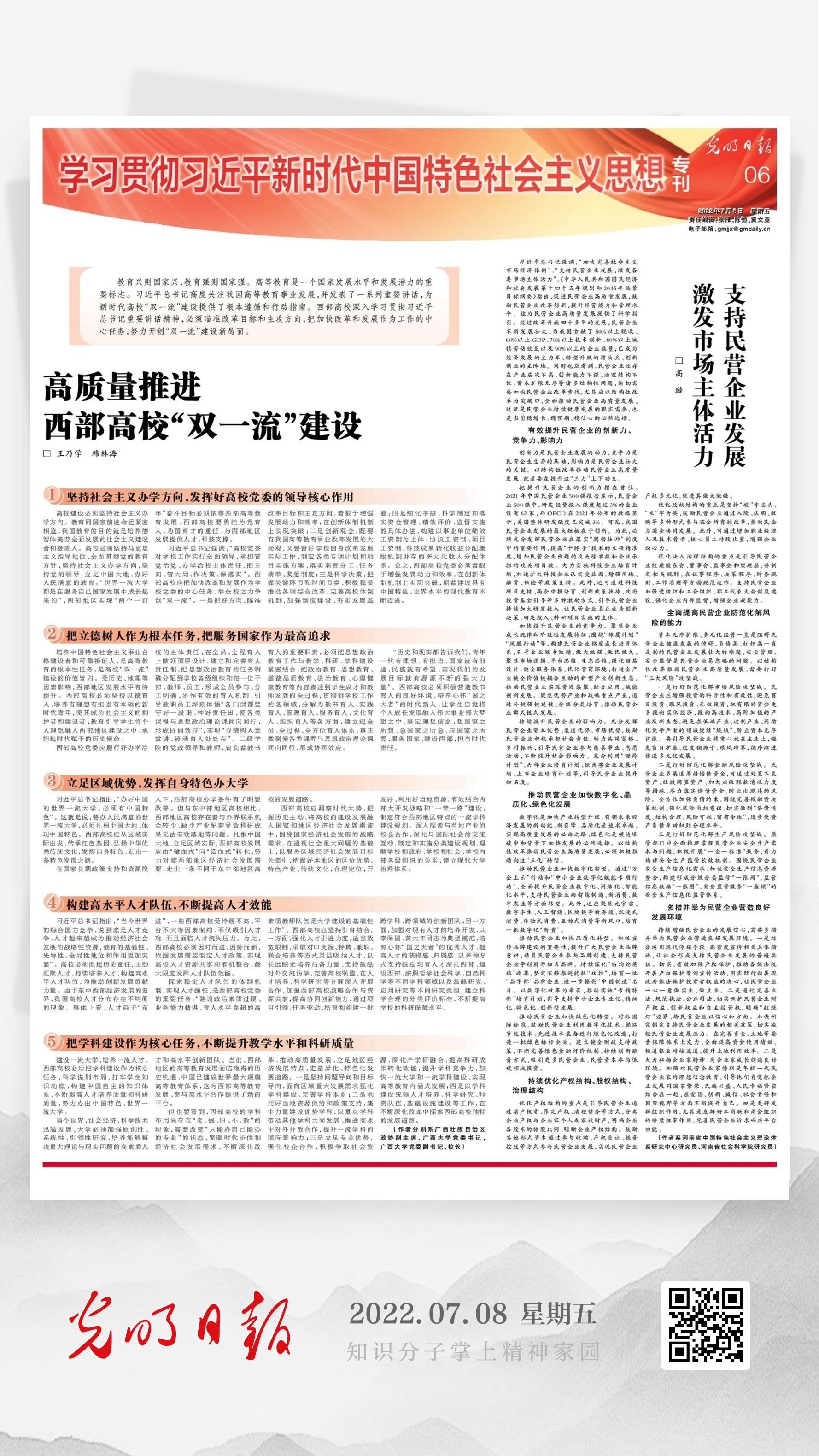 建设一流大学,培养一流人才,西部高校必须把学科建设作为核心任务,科学谋划布局,打牢学生知识功底,构建中国自主的知识体系,不断提高人才培养质量和科研质量,努力办出中国特色、世界一流大学。