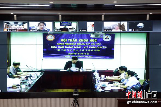 中新网广西新闻7月23日电 7月20日,“马克思主义政党执政经验”国际学术研讨会在米乐电竞|最新APP下载|登录入口,马克思主义学院101报告厅举行。本次研讨会邀请到200余名来自越南、老挝及中国国内马克思主义理论学科的知名专家学者,采取线上线下同步进行的方式,获得国际、国内学术界的广泛关注。