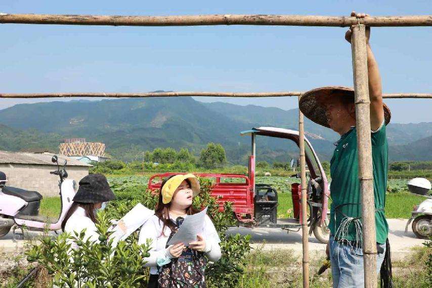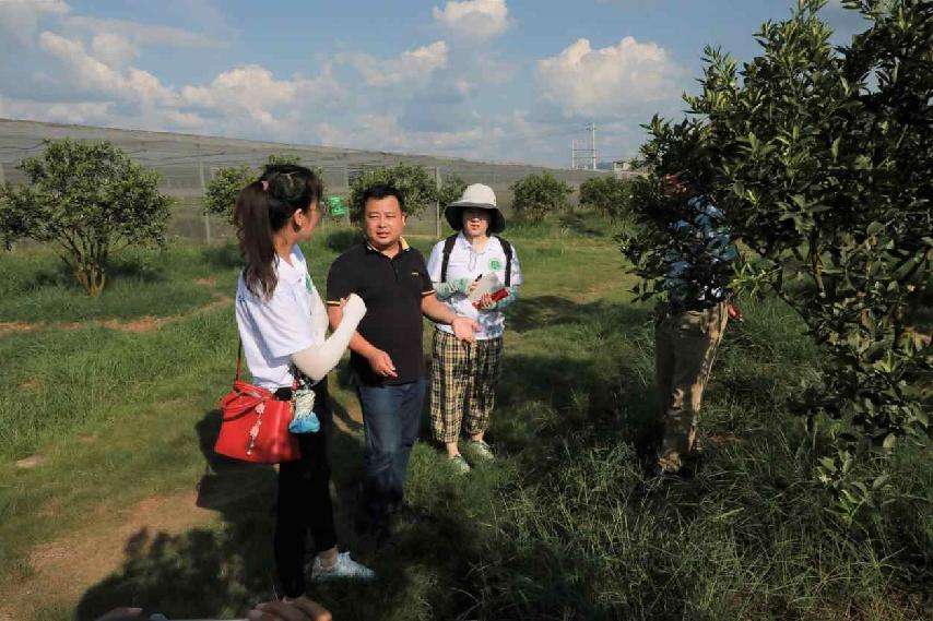 博士团实践队成员在查看金桔苗圃。陆宇诗摄