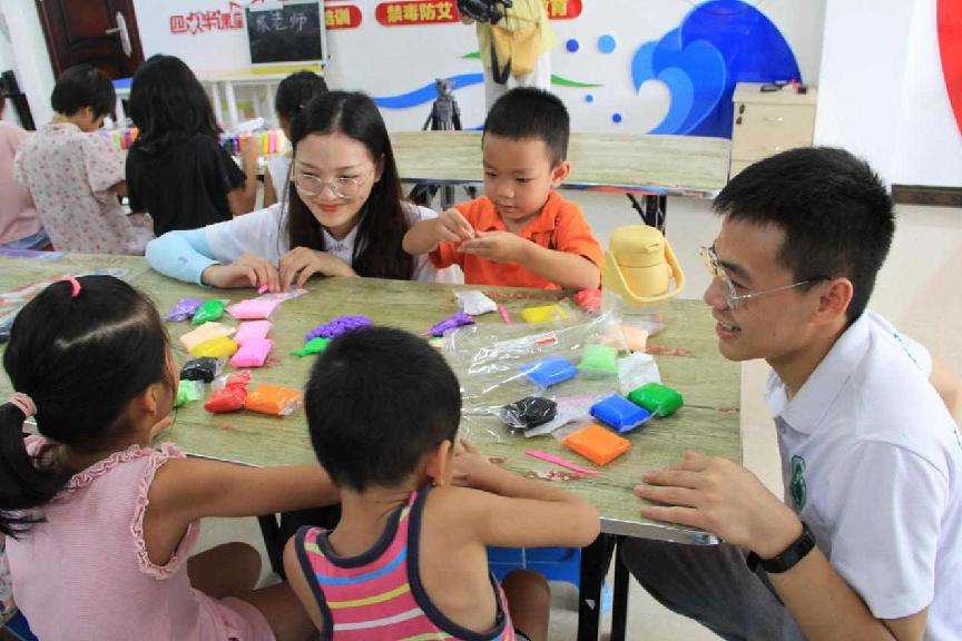 实践队员与小朋友游戏互动。 陆宇诗摄