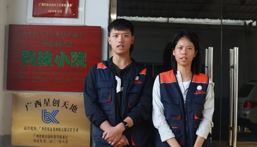 (陈贞洁和廖世明在广西扶绥坚果科技小院合影)