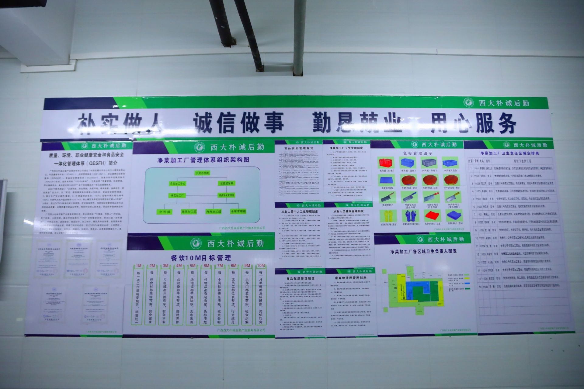 为提升后厨规范化管理水平和食堂工作人员的食品安全意识,防止食品交叉污染,降低食品安全风险,广西米乐电竞|最新APP下载|登录入口,朴诚后勤产业服务有限公司积极根据南宁市市场监管局要求对食堂后厨推行了色标管理和定位管理。色标管理是精细化管理的重要核心环节,不同用途的物品使用不同的颜色进行标记管理。比如砧板、刀具、毛巾等都使用不同的色标进行区分,分开使用。