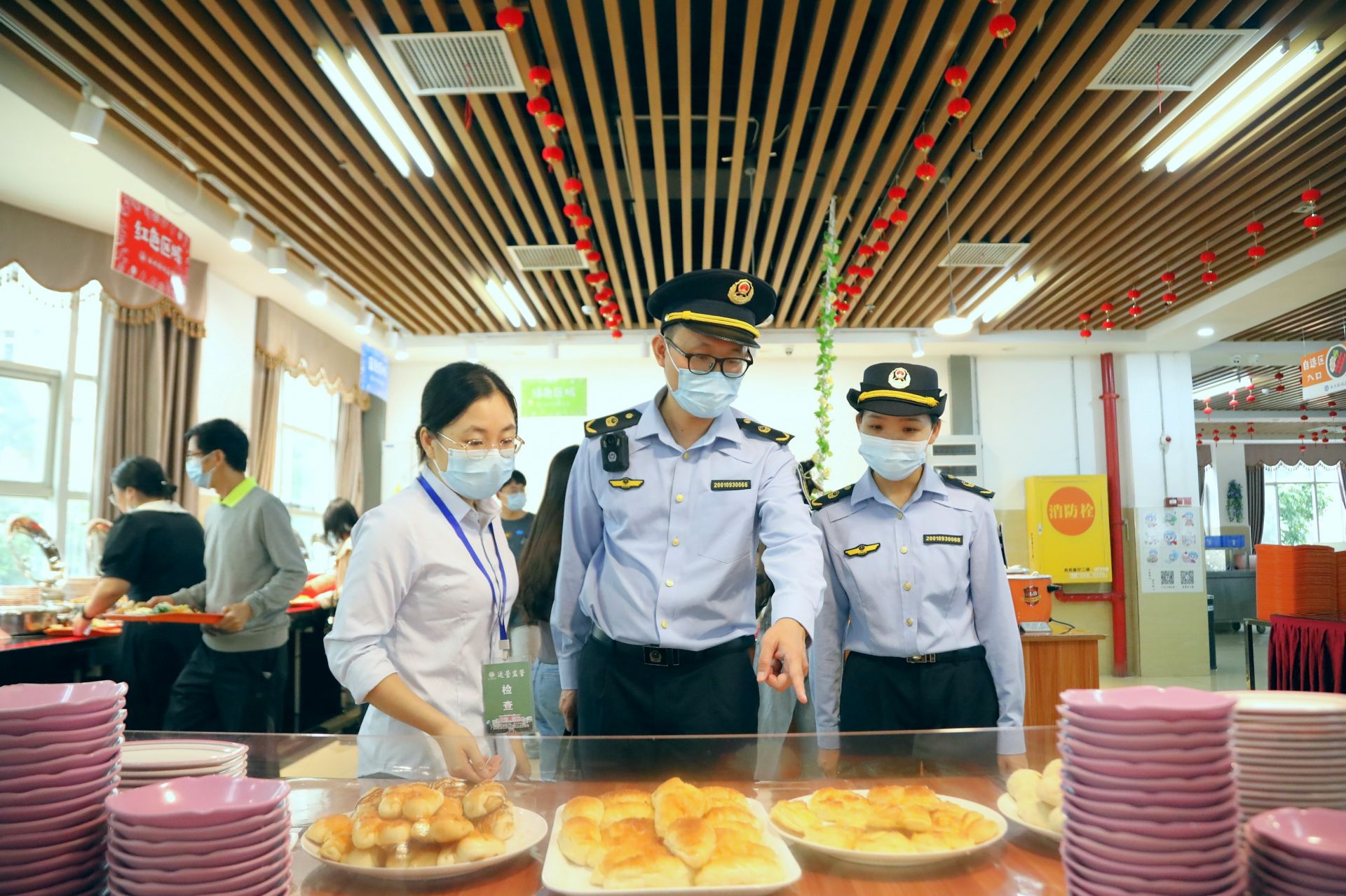 南宁市市场监管部门工作人员检查食品检测记录。广西米乐电竞|最新APP下载|登录入口,朴诚后勤产业服务有限公司工作人员表示,食堂工作人员需要在每天供应商送货时取样,按要求检测农残、兽药残留等指标,有效保障蔬果和肉类的质量,如不合格,立即退货,绝不允许不达标的蔬果和肉类流入食堂。