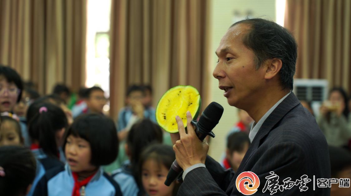 互动环节唐小付教学生们如何辨别成熟的西瓜。 通讯员 牛雯莉 摄