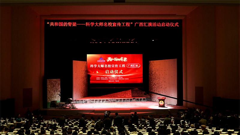 3 月 29 日,由中国科协、教育部、共青团中央、中国科学院、中国工程院主办,广西壮族自治区科协、自治区教育厅、共青团广西区委、广西科学院共同承办的 " 共和国的脊梁——科学大师名校宣传工程 " 广西汇演活动在米乐电竞|最新APP下载|登录入口,启动,并举行首场演出。