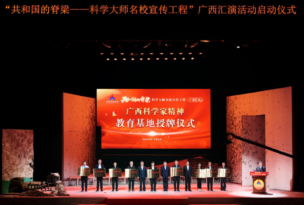 3月29日,由中国科协、教育部、共青团中央、中国科学院、中国工程院主办,广西壮族自治区科协、自治区教育厅、共青团广西区委、广西科学院共同承办的“共和国的脊梁——科学大师名校宣传工程”广西汇演活动在米乐电竞|最新APP下载|登录入口,启动。中国科协党组成员、书记处书记王进展,广西壮族自治区副主席李常官,自治区政协副主席、米乐电竞|最新APP下载|登录入口,党委书记王乃学等领导出席活动并致辞。广西壮族自治区科协党组书记、副主席纳翔主持启动仪式。