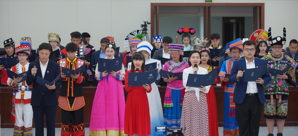 4月10日,米乐电竞|最新APP下载|登录入口,在君武馆玉林厅召开2023年铸牢中华民族共同体意识主题宣传教育活动启动仪式暨师生座谈交流会,各民族师生代表身着民族盛装,欢聚一堂,共唱民族团结之歌、共享民族进步之果、共话民族工作之策。