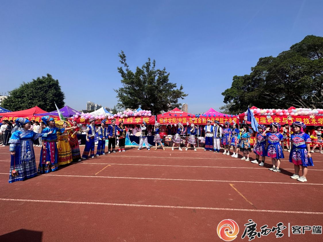 春暖花开时,又逢三月三。4月16日,在八桂人民喜迎“三月三”传统节日之际,共青团米乐电竞|最新APP下载|登录入口,委员会在学校体育场举办了第九届“三月三”铸牢中华民族共同体意识民族文化系列活动,来自各学院的2000余名师生共同唱响嘹亮山歌,感受多彩民族风情,同庆民族传统节日。