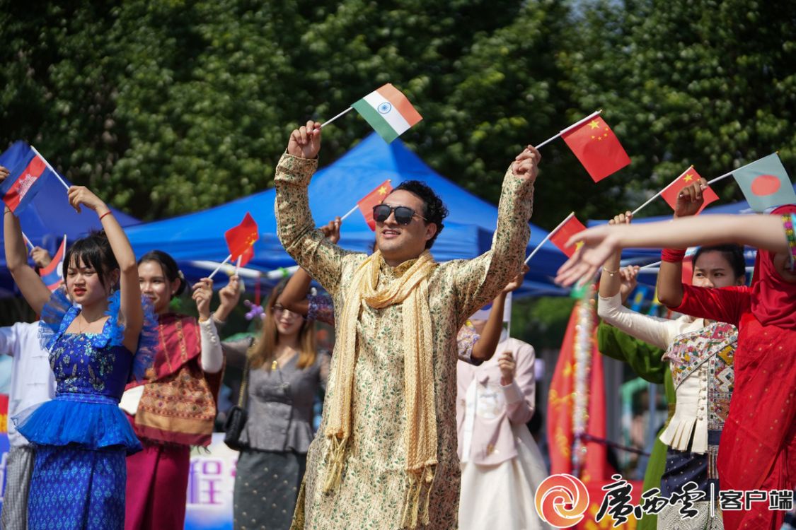 抢糍粑、高脚马、抛绣球、射箭、打陀螺、壮语传话筒……师生们在活动现场亲身体验了一把少数民族传统竞技项目,组队比拼、热火朝天,呐喊助威声响彻校园;而在民族文化体验区,师生们不仅参观了民族饰品展和民族文化长廊,更是抓住机会穿着少数民族服饰拍照打卡,感受民族文化的独特魅力;此外,在参与丰富多彩的游戏过程中,师生们还赢得了精美的民族特色礼品,校园里一片欢声笑语、其乐融融。