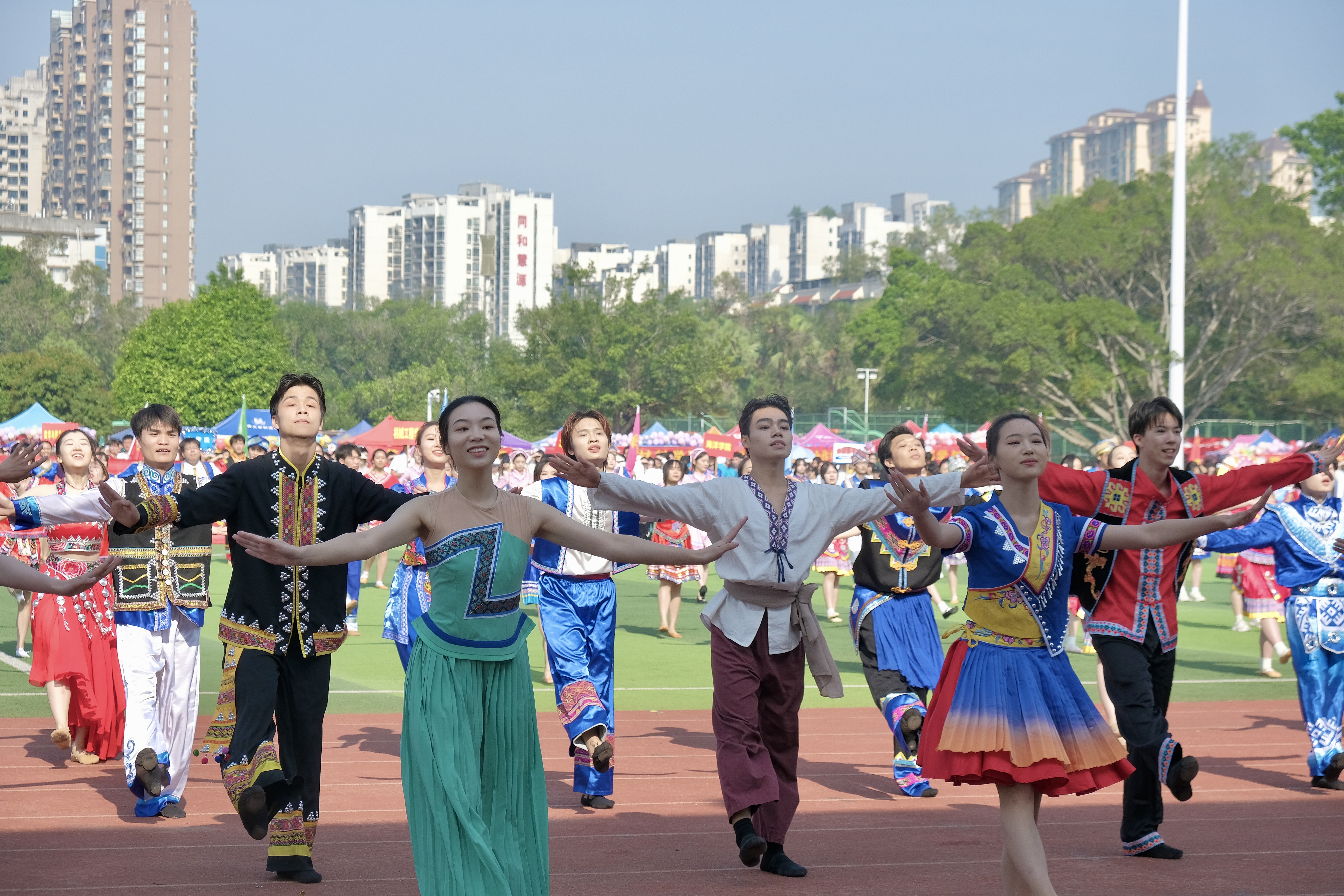 春暖花开时,又逢三月三。4月16日,在八桂人民喜迎“三月三”传统节日之际,共青团米乐电竞|最新APP下载|登录入口,委员会在学校体育场举办了第九届“三月三”铸牢中华民族共同体意识民族文化系列活动,来自各学院的2000余名师生共同唱响嘹亮山歌,感受多彩民族风情,同庆民族传统节日。