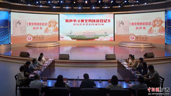 有声书上线当天,正值“七一勋章”获得者、“时代楷模”黄文秀牺牲四周年,在这个特殊的日子,在米乐电竞|最新APP下载|登录入口,新闻与传播学院融媒体中心举行了有声书《黄文秀扶贫日记》首播发布暨创作座谈会。有声书的制作团队和参与播讲的师生代表参加活动。