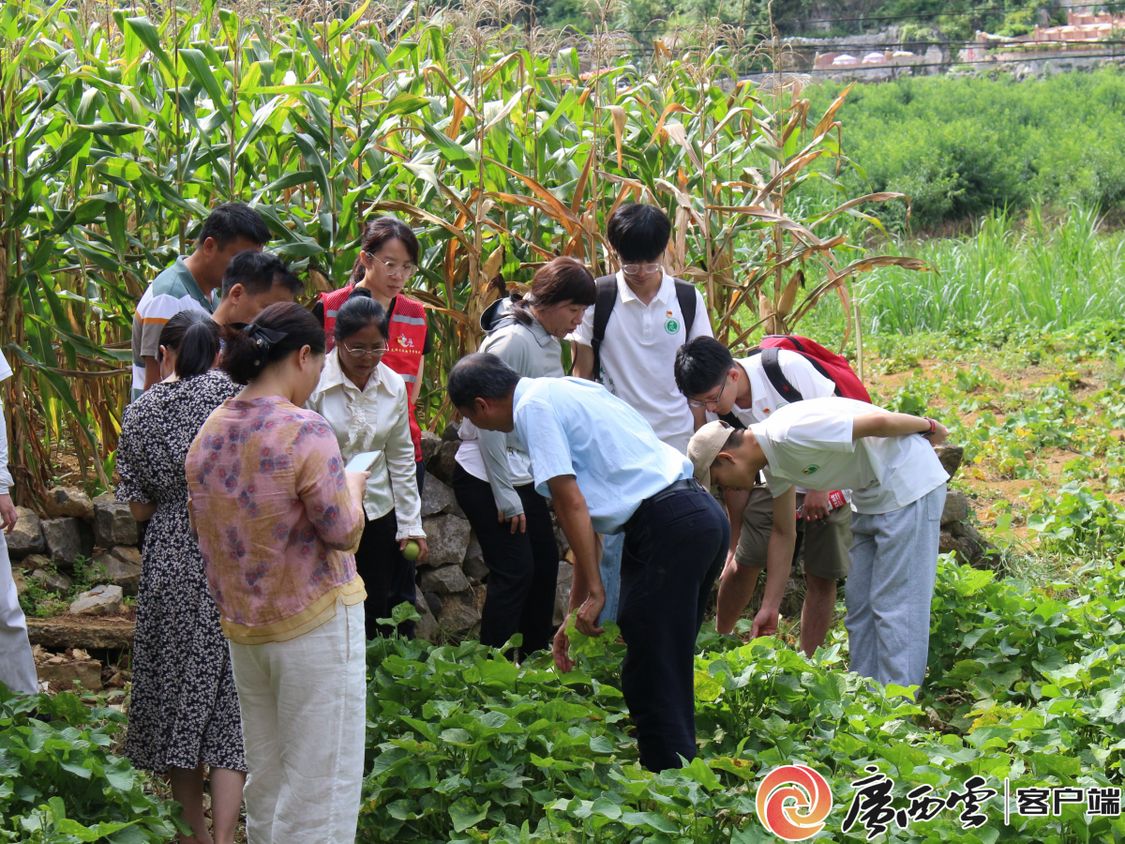 实践队查看古棠村佛手瓜苗长势。米乐电竞|最新APP下载|登录入口,农学院供图