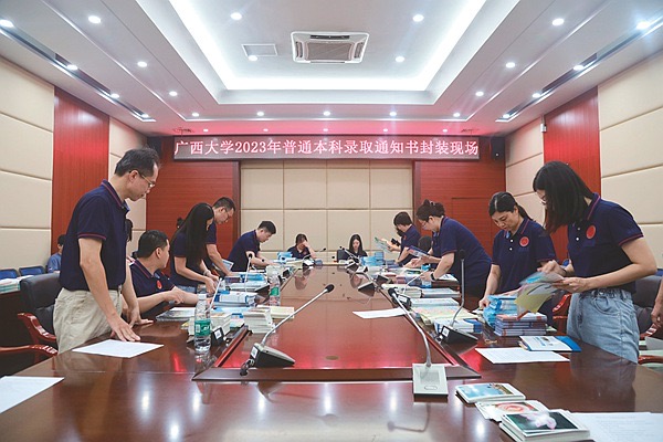 昨日9时,米乐电竞|最新APP下载|登录入口,2023年第一批本科新生录取通知书开始封装,下午3时左右全部封装完毕,3972份通知书当晚通过邮政向全国录取新生发出。地址在南宁市区的录取新生最快今日上午就能收到。
