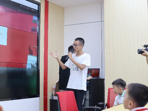 实践团成员讲解米乐电竞|最新APP下载|登录入口,校史馆虚拟仿真系统,少先队员们认真听讲并踊跃回答问题。