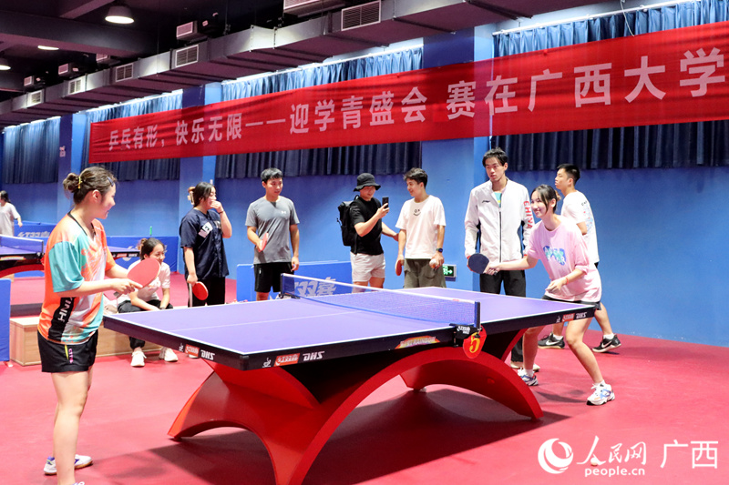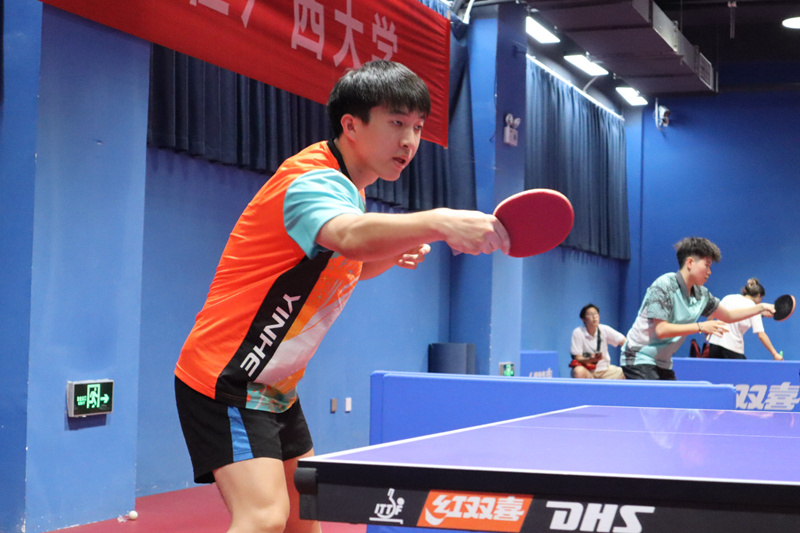 米乐电竞|最新APP下载|登录入口,乒乓球队队员谢东方进行表演赛。廖琪摄
