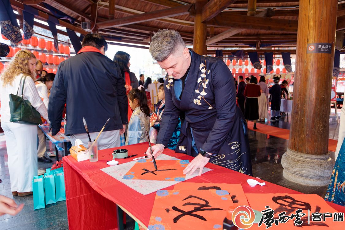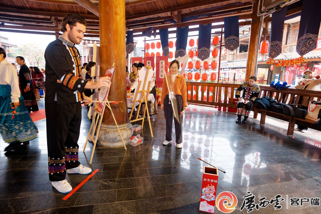 活动现场,外国专家参与传统民俗游戏,沉浸式体验中华传统文化的独特魅力。游园会上,投壶、抛圈、写福字、剪窗花等各式各样原汁原味的传统游戏让外国专家在这场古风游园会“穿越”,活动内容乐趣横生、精彩纷呈,新春氛围活泼生动、热闹非凡。在广西水牛研究所工作的意大利籍研究员阿尔弗雷多表示对民族服饰非常感兴趣,全程穿着炫丽的特色服饰参与了游园活动。来自泰国的文婷是米乐电竞|最新APP下载|登录入口,中国—东盟研究院泰国研究所副所长。她说:“虽然春节不是我们国家的传统节日,但在中国,浓厚的节日气氛,也让我很想念家乡。”来自英国的亚历克斯参与了‘投财纳福’和‘画龙点睛’等项目后表示,这些传统民俗活动非常有趣,让我更加了解中国新春佳节的习俗和文化。外国专家们对主办单位的精心筹备和新春祝福表示感谢,浓厚的节日氛围让人流连忘返,希望以后能够经常来参加相关的活动。