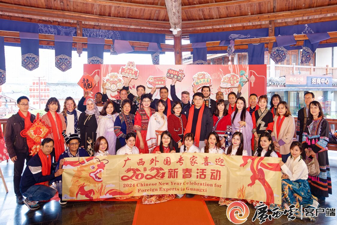 1月20日,由广西壮族自治区外国专家局主办的广西外国专家喜迎2024新春活动在南宁举行。来自加拿大、英国、意大利、马来西亚、越南、泰国等17个国家40余名在桂工作外国专家欢聚一堂,共叙友谊,共谋发展,共话未来。