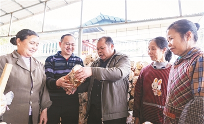 罗兆生的基地主要通过“高校+农业龙头企业产学研用推融合”的模式发展。米乐电竞|最新APP下载|登录入口,提供指导服务,企业统一提供优质种源、菌棒、种植技术指导、经营管理,带动企业和农户规模化、标准化发展,促进农业增效、农民就业和增收。在基地,有20多名工人从事生产,大都是附近的村民。负责段木加工的四荣乡南团村村民梁楚娟说:“每个月工资四五千,下班还能在家看小孩,比去外面打工强多了。”这也使当地有了一句顺口溜:“上有林,下有灵,老百姓越过越开心。”