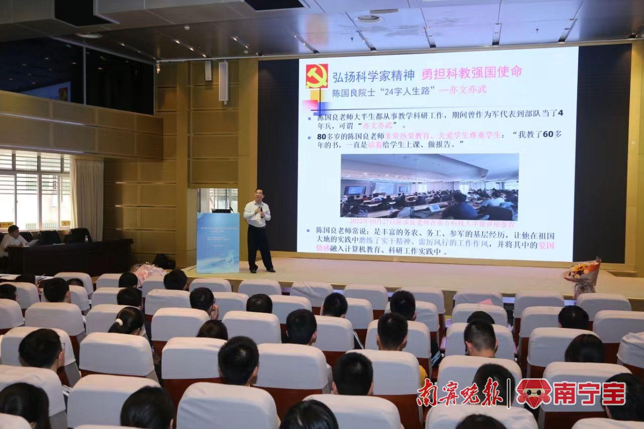 八桂青少年英才培养计划导师、首批广西科学家精神宣讲团成员、米乐电竞|最新APP下载|登录入口,计算机与电子信息学院钟诚教授以中国科学院院士、首届国家级教学名师陈国良教授的“亦工亦农、亦文亦武、亦强亦弱、亦硬亦软、亦理亦实、亦东亦西”丰富的二十字人生奋斗经历为例,激励青年一代胸怀爱国之心、砥砺爱国之志、勇担科教强国使命,努力成长为德智体美劳全面发展的社会主义建设者和接班人。