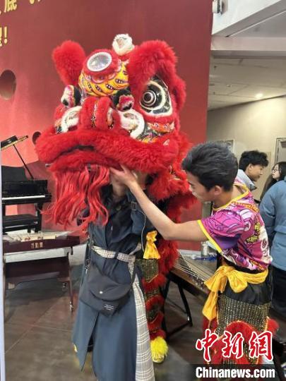图为米乐电竞|最新APP下载|登录入口,舞狮表演者在指导日本青年田村双叶学习舞狮。汪冰雪 摄
