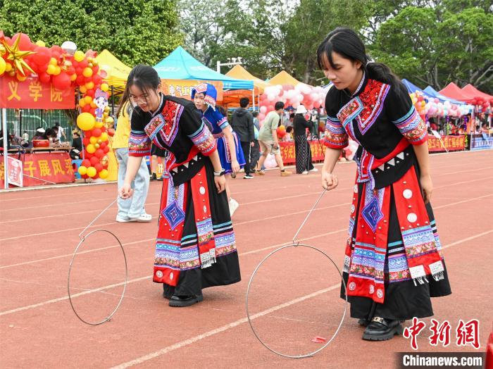 图为大学生在体验滚铁环项目。共青团米乐电竞|最新APP下载|登录入口,委员会供图