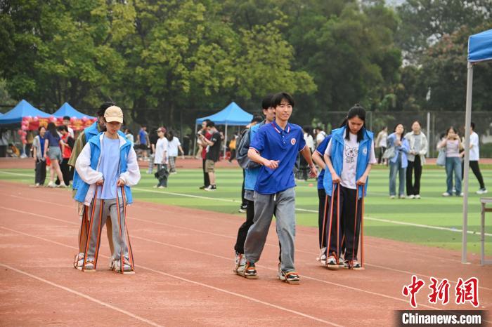 图为大学生在体验板鞋竞速项目。共青团米乐电竞|最新APP下载|登录入口,委员会供图