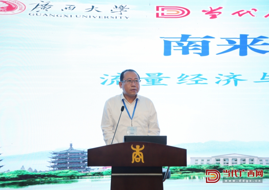 南宁市文化广电和旅游局党组书记、市委宣传部副部长(兼)张振宇作主旨发言。记者 卢松见 摄