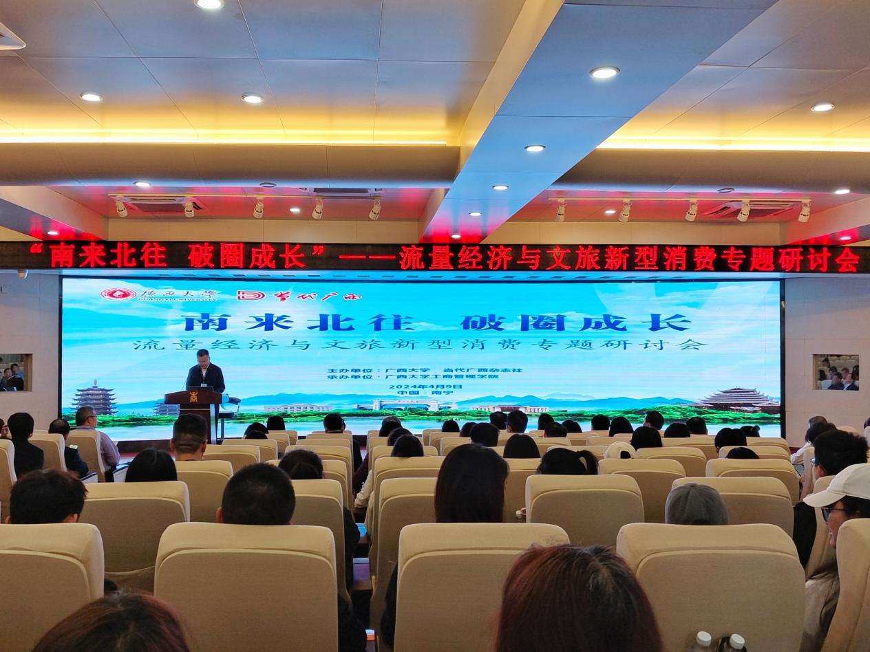 4月9日,由米乐电竞|最新APP下载|登录入口,、当代广西杂志社主办,米乐电竞|最新APP下载|登录入口,工商管理学院承办的“南来北往 破圈成长”——流量经济与文旅新型消费专题研讨会在米乐电竞|最新APP下载|登录入口,举行。广西壮族自治区党委宣传部副部长、自治区文化和旅游厅党组书记甘霖,米乐电竞|最新APP下载|登录入口,党委常委、副校长夏国恩等相关领导出席研讨会开幕式。