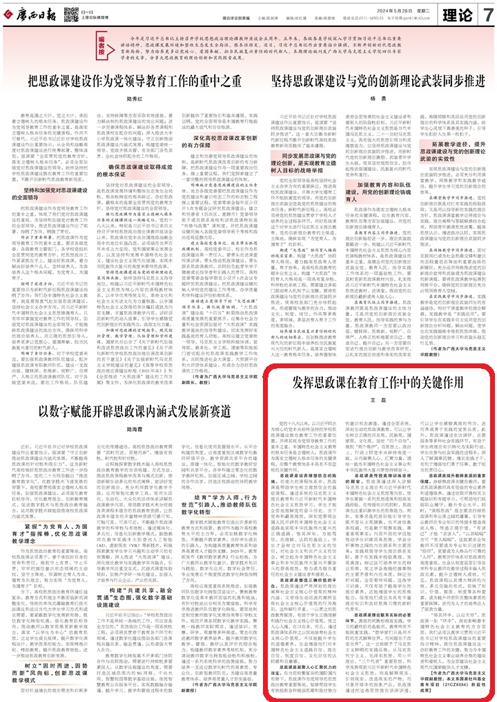 发挥思政课在教育工作中的关键作用