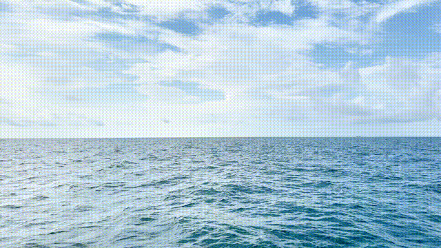 6月7日下午,一艘快艇从蓝桥海岸出发,行驶约1.5公里,停留在涠洲岛海域西北角。