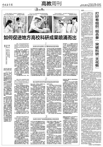 三是“搭平台”。当前,深化科研平台建设,依托科研平台有组织推进战略导向的体系化基础研究、市场导向的应用基础研究,已成为高校科研工作的新导向。地方高水平大学首先应当注重加大基础研究平台,特别是应用基础研究平台的建设力度。学校可以利用各省份大力推进省实验室建设的契机,积极寻求地方政府的支持,主动融入或牵头负责省实验室的建设工作,从而优化学校在特定领域的科研资源配置,提升创新能力。其次,学校要以科技部“全国重点实验室建设‘五问’”为指引,推进科研平台建设,凝练科研重点方向及任务,倒逼特色化高质量成果产出。再次,学校要搭建与地方龙头企业合作互动的平台。地方高水平大学以服务区域经济发展为己任,开展应用基础研究和关键共性技术研究,需要通过与行业龙头企业互动,找到“真问题”,从而促进科研成果的转化,进而推动原创性、实用性技术发明的诞生及技术成果应用效益的提升。