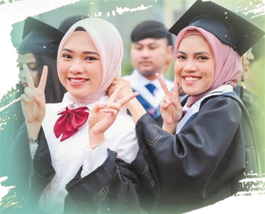 学子们的成长成才,同样离不开很多人的陪伴和支持。毕业典礼上,广西中医药大学全体毕业生起立向家长行礼,感谢父母的养育之恩;向导师行谢师礼,感谢他们的教导之恩;拥抱身边的同学,感谢他(她)们多年的陪伴。该校2019级传统中医班越南籍留学生阮秋月动情地说:“学校就如同家一般,在其温暖中,我得到了真正成长!”