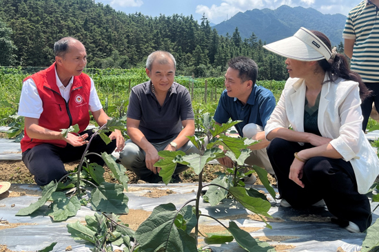 广西乡村科技特派员到基地指导茄子生产。陈迈摄