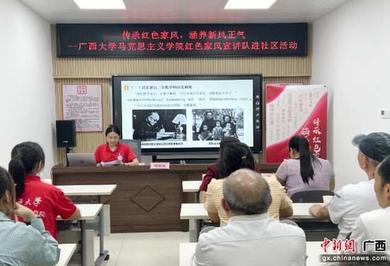 为助力营造家庭文明新风尚,让红色家风在基层社区“生根发芽”,9月12日,米乐电竞|最新APP下载|登录入口,学生红色家风宣讲队走进南宁市西耐路社区,开展以“传承红色家风,涵养新风正气”为主题的红色家风宣讲活动。西耐路社区党群服务中心工作人员和社区党员代表参加活动。