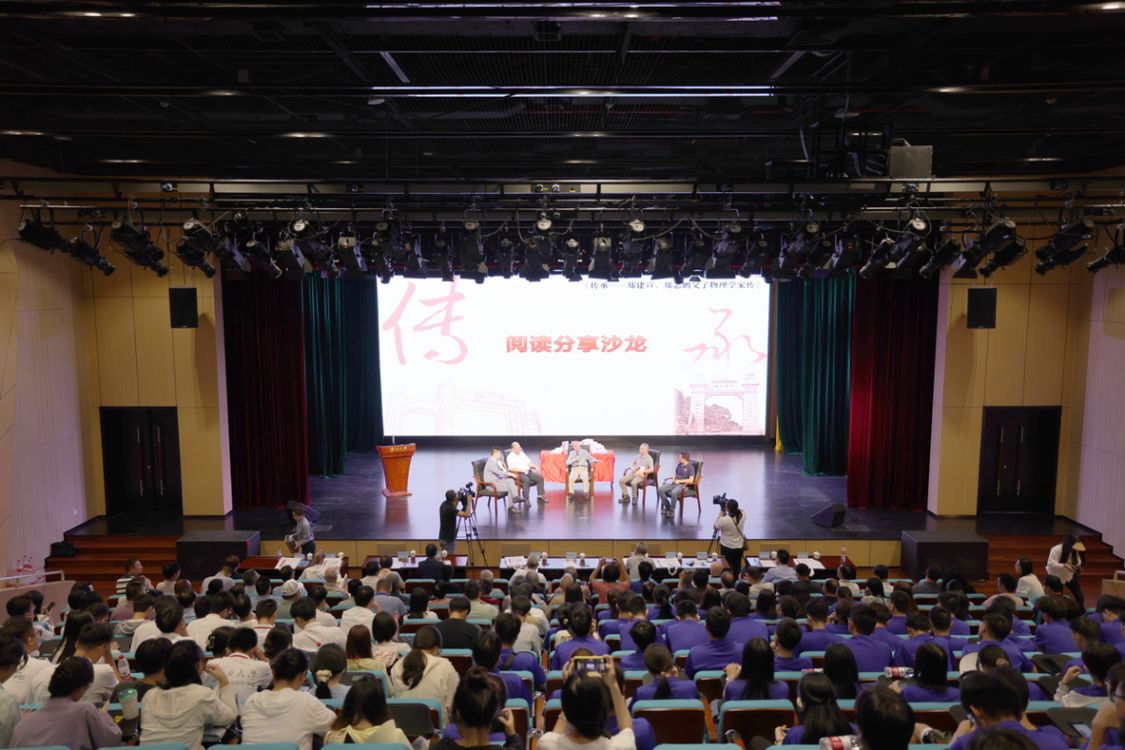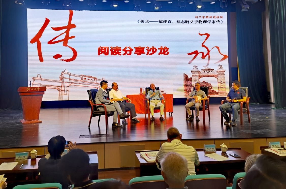 新书阅读分享沙龙环节,郑志鹏老校长,郑建宣校长学生代表、广西科学院原党组书记兼院长、米乐电竞|最新APP下载|登录入口,原副校长钟夏平,郑志鹏校长学生代表、米乐电竞|最新APP下载|登录入口,物理科学与工程技术学院副院长刘宏邦,《传承》作者代表、香港文汇报广西联络处原主任、大公报广西办事处原主任罗保华,上台做交流分享。他们围绕书籍分享了各自的观点,让大家更加深入地了解了郑建宣、郑志鹏父子的科学人生和科学家精神。