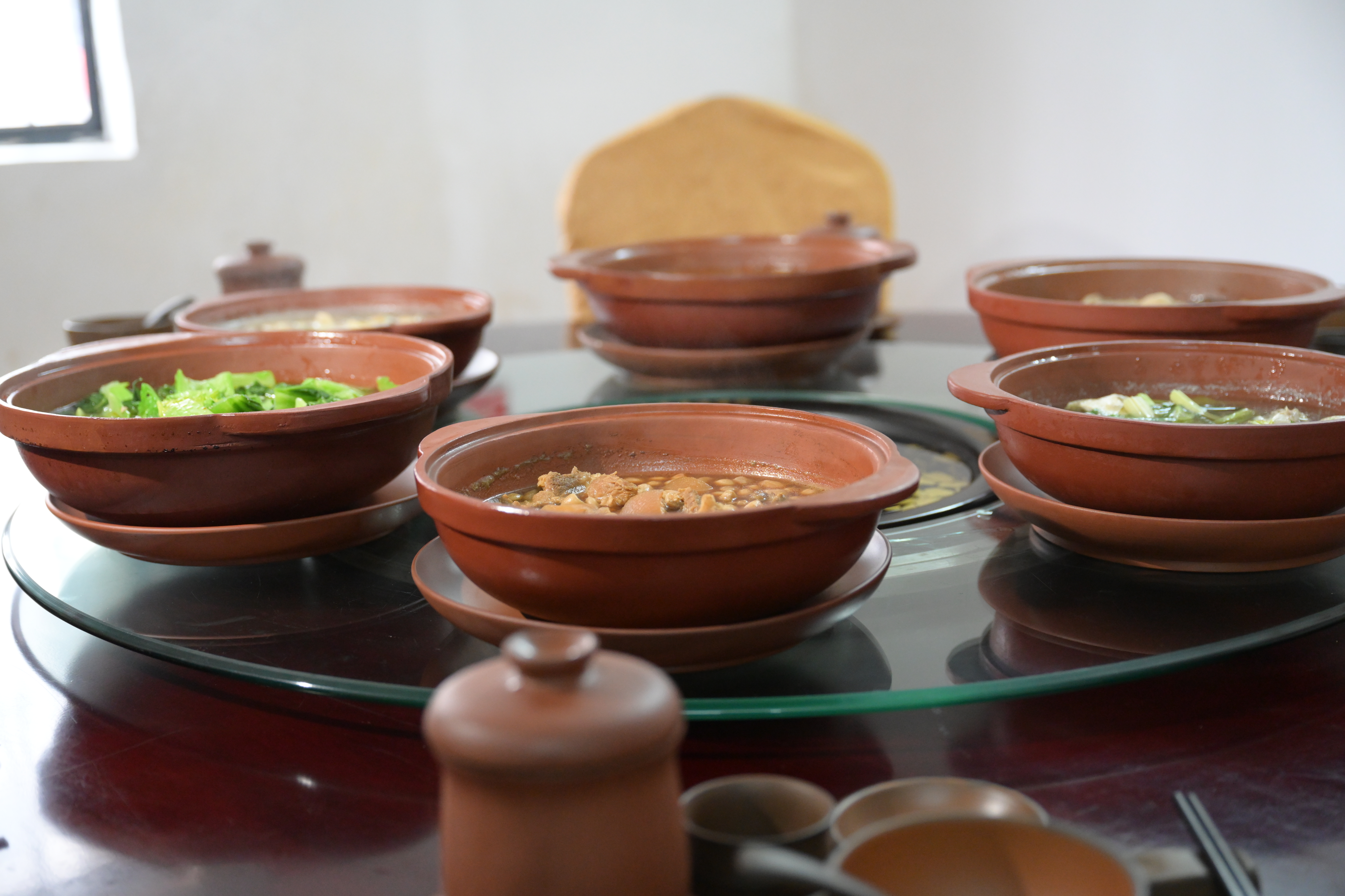 9月24日,走进钦州德宜盛非遗美食馆厨房,十几个坭兴陶砂锅整齐码放在陶炉上,汤汁随着炉火的加持芳香四溢;层层相叠的蒸屉里,坭兴陶炖盅经历着文火慢炖,等待美味陈酿。不多时,鸡汤的香味、鱼肉的鲜味、雪梨的甜味透过锅盖弥漫开来。