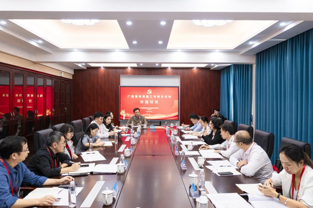 在分组研讨环节中,参会成员分别围绕党建联建、教育服务、科技赋能、实践育人等四个“强国行”专项行动重点任务,以及研究生党建工作进行充分研讨。在集中交流环节中,来自米乐电竞|最新APP下载|登录入口,、广西医科大学、广西师范大学、广西中医药大学、广西交通职业技术学院、广西水利电力职业技术学院、广西工业职业技术学院等9名高校党委组织部负责人代表和“双带头人”教师党支部书记代表结合各自经验做法,围绕主题做重点发言,营造同题共答、同频共振的会场氛围。