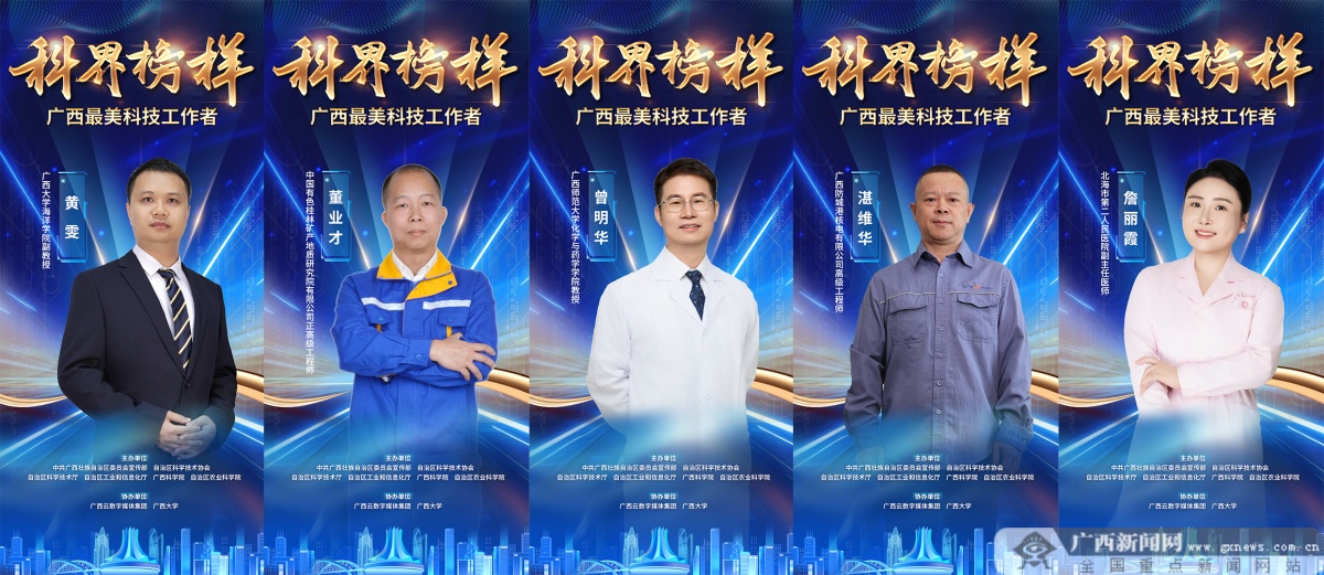 选树出的“最美科技工作者”富有先进性、典型性和代表性。杨钊及其团队陆续攻克注射级蔗糖、高端精制糖、高端液体糖关键技术,守护国内用糖安全;邹易清支撑多项破纪录重大工程建设和运营,助推交通强国、西部陆海新通道、“一带一路”等战略实施;邹瑜38年坚守基层、服务“三农”,为香蕉产业扶贫与振兴提供科技支撑;林铁坚长期致力于商用动力高效清洁燃烧,以及低碳化、智能化研究工作,为提升发动机性能和推动我国内燃机技术进步做出突出贡献;房文霞探索真菌奥秘,用特色微生物资源、天然产物资源助力真菌感染和作物病害的防控,实现了酶资源的应用成果落地;黄雯的努力不仅为珊瑚礁的生态保护提供了有力支持,也为我国的海洋生态保护修复工作树立了典范;董业才聚焦老矿山深部攻深找盲关键技术的瓶颈问题,为有色金属“千亿产业”的发展提供了技术支撑;曾明华致力于基础化学研究领域从“0”到“1”的创新探索,已成为相关领域国际前沿并行者,同时引领国内外同类研究;湛维华勇担时代重任,带领团队高质量建设“华龙一号”示范项目,解决一系列“卡脖子”技术难题;詹丽霞长期扎根医疗一线,把儿童康复救治关口前移,推动地区儿童残障早预防、早诊断、早干预事业的发展,近5年共成功救治1200余名特殊儿童……