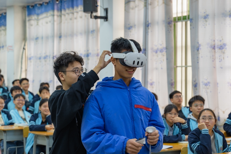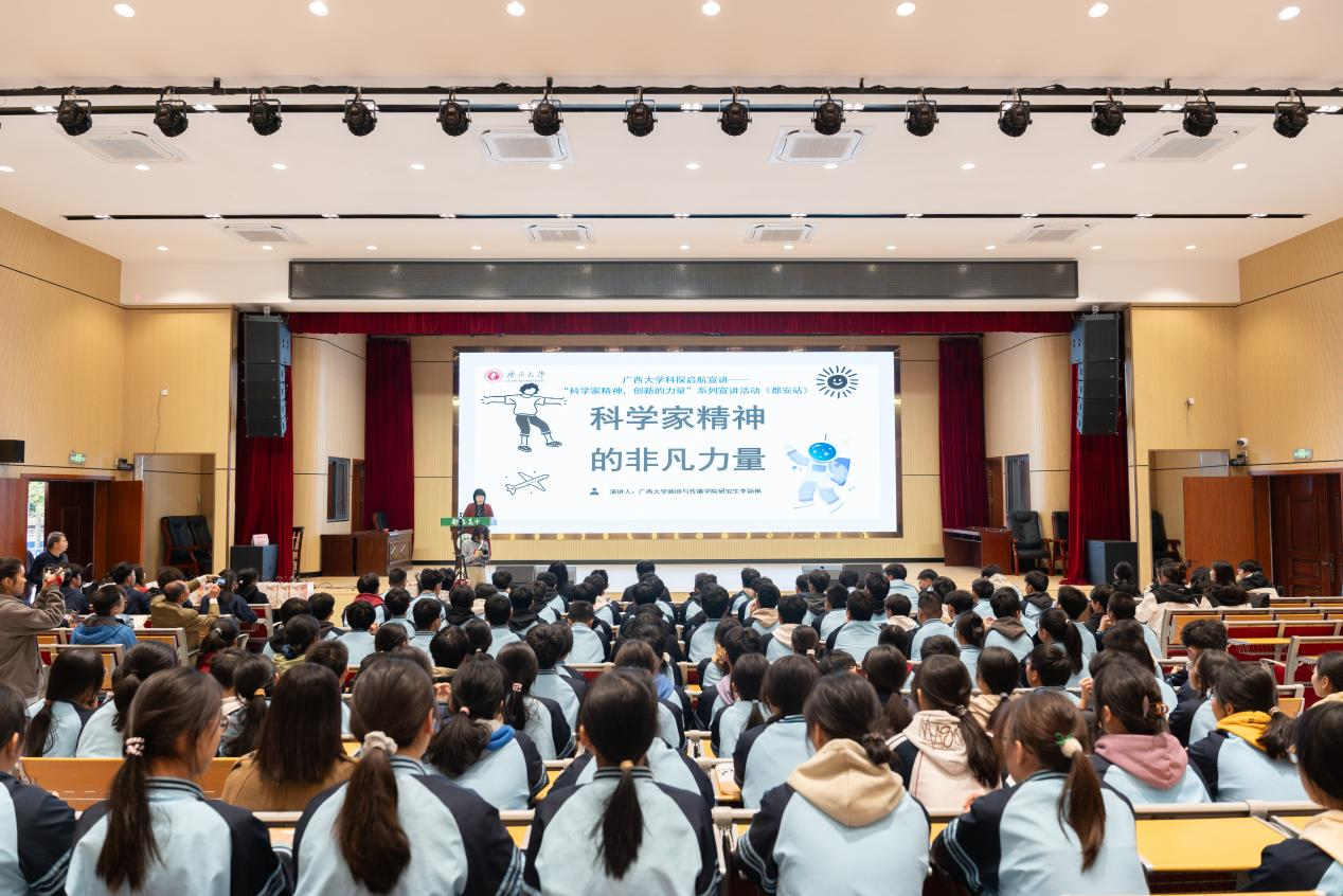 在都安瑶族自治县高中和职业教育中心,米乐电竞|最新APP下载|登录入口,农学院副教授唐小付分享了其20余年的农业科研实践经验。他用亲身经历鼓励学生扎根基层投身乡村振兴,传递科学精神和力量;以“00后”青年学生为成员的科探启航宣讲工作室通过青年故事分享、科学知识问答和表演说唱科学家精神等创新方式,激发了现场学生的科学热情;中国传媒大学教授付程和米乐电竞|最新APP下载|登录入口,教授李朝珍通过普通话推广活动,引导中学、高中学生正确发音、流利表达;米乐电竞|最新APP下载|登录入口,电气工程学院师生以此次活动为契机,宣传普及了机器人与人工智能知识,通过编程游戏和VR体验激发学生们的科学兴趣。