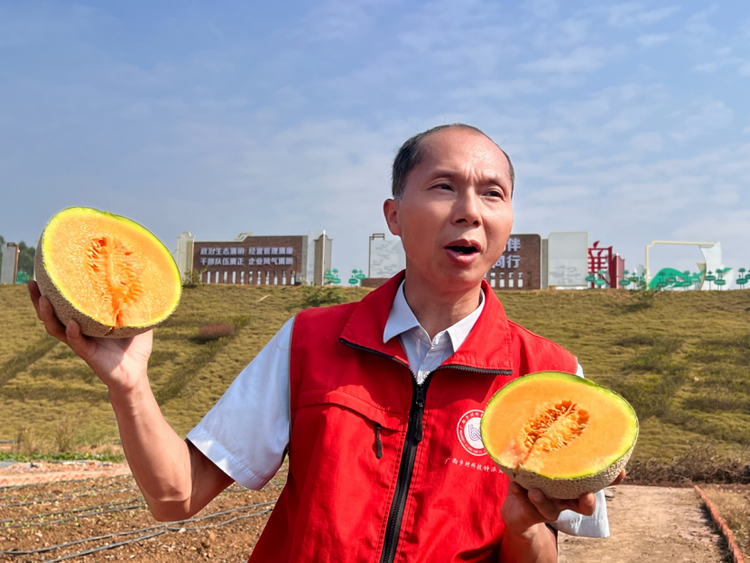 唐小付展示种植的网纹甜瓜 摄影 练才榕