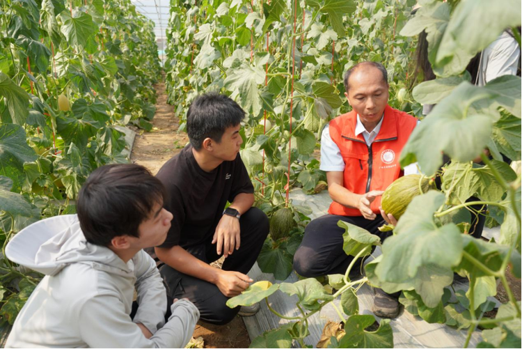 唐小付(右一)向学生传授网纹甜瓜种植技术 供图 米乐电竞|最新APP下载|登录入口,