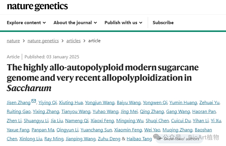2. Qing Zhang#, Yiying Qi#, Haoran Pan#, Haibao Tang#...., Jisen Zhang*. Genomic insights into the recent chromosome reduction of complex autopolyploid sugarcane S. spontaneum.2022. Nature Genetics. 10.1038/s41588-022-01084-1.